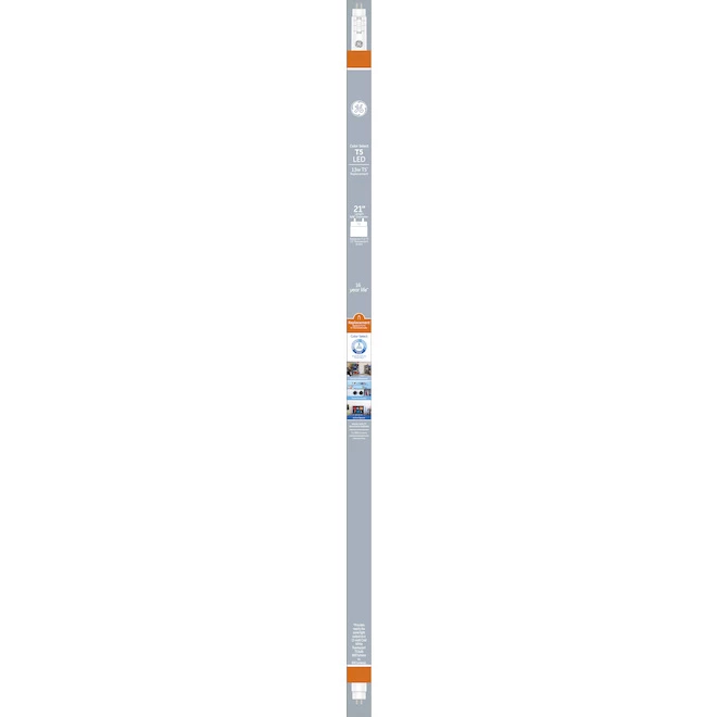 GE’s Color Select T5 LED tubes replace 21-inch T8 fluorescent bulbs using the existing fixture and electronic ballast. Its slim size fits in the same fixtures as traditional 21-inch T5 fluorescent bulbs. Why make the switch to LED? GE’s LED tubes provide long 16-year life based on six hours use per day, so you’ll replace less often. They use less energy than a 17-Watt T5 with nearly the same light output helping you save money on energy. And they’re mercury free. Use the toggle switch to choose between Cool White (4000K), Sunshine (5000K), and Daylight (6500K) to find the perfect colour temperature for any space.