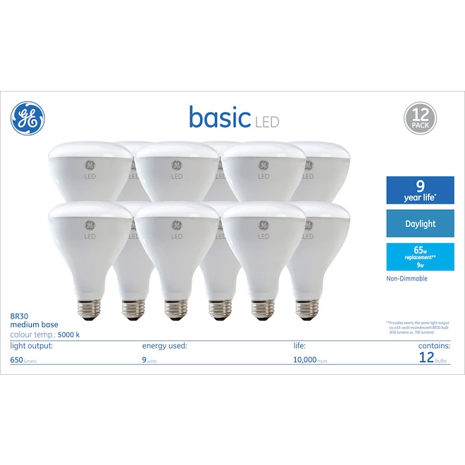 Model Description :GE Basic Daylight 65W Replacement LED Indoor Floodlight BR30 Light Bulbs – 12 pack
