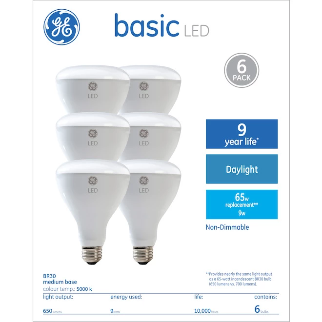 Model Description :GE Basic Daylight 65W Replacement LED Indoor Floodlight BR30 Light Bulbs – 6 pack