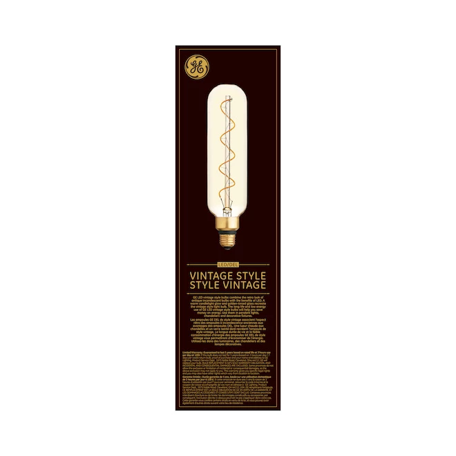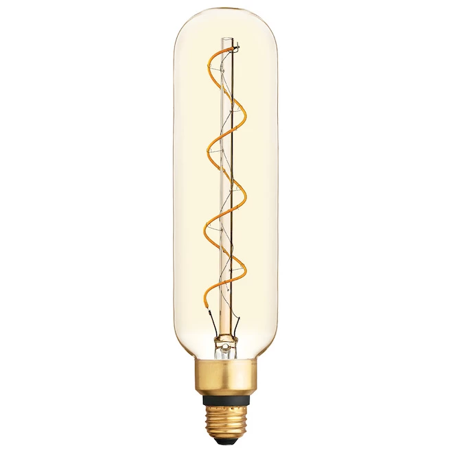 Large Vintage Style Spiral Filament 40-Watt Replacement Amber Finish T20 Tubular LED light bulb creates a dramatic focal point in any room. The sizeable glass globe and delicate spiral filament beautifully accent traditional or modern fixtures. A warm candlelight glow and golden-tinted glass recreates the retro feel of Edison-style incandescent bulbs. This dimmable decorative bulb is rated to last 13 years based on 3 hours per day use. It features instant full brightness and is free of Mercury for easy disposal. Use the Large Vintage Style T20 Tubular bulb with a medium base in dimmable pendant lights, table lamps and floor lamps. Remove the lamp shade and highlight the refined style of Large Vintage Style LED bulbs. Pair with our Pendant Fixtures for an enhanced look.