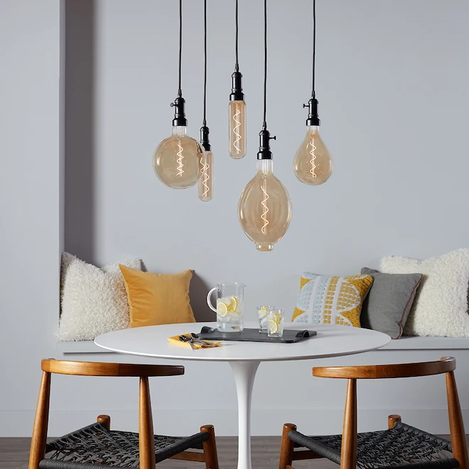 - Large decorative bulb for pendant lights, table lamps, floor lamps and decorative fixtures