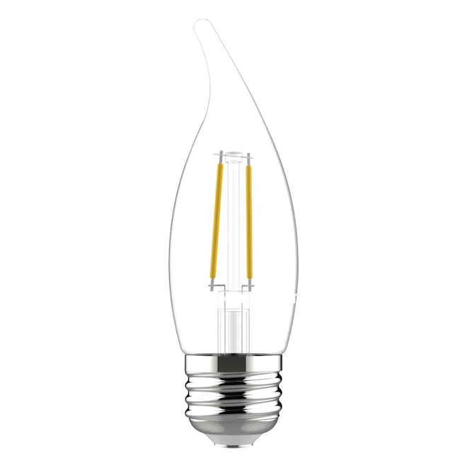 Relax HD Soft White LED 40-Watt Replacement Clear Finish Bent Tip decorative light bulbs provide enhanced color contrast and boldness versus standard LED bulbs. The high definition soft white light helps create a comfortable, cozy light that’s ideal for bedroom lighting, foyer lighting, family rooms and dining rooms. They’re dimmable and illuminate your home with soft white light. These decorative bulbs are great for frequently used fixturesuRelax HD Soft White LED bulbs are rated to last 13 years and save 59 dollars on energy costs over the bulb’s life versus a 40-Watt decorative incandescent bulb. Unlike CFL bulbs, LED HD bulbs feature enhanced color, instant full brightness and are free of Mercury. Replace CFL and incandescent light bulbs with Relax HD Soft White LED Bent Tip (CAM) bulbs with a medium base in dimmable indoor chandeliers, sconces and fixtures where the bulb is visible, including damp locations.