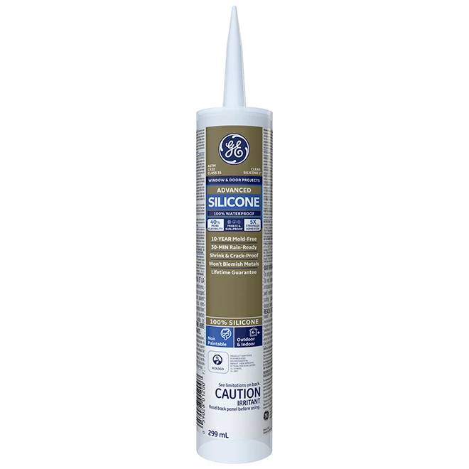 - GE 100% Silicone is 100% waterproof and 100% weatherproof