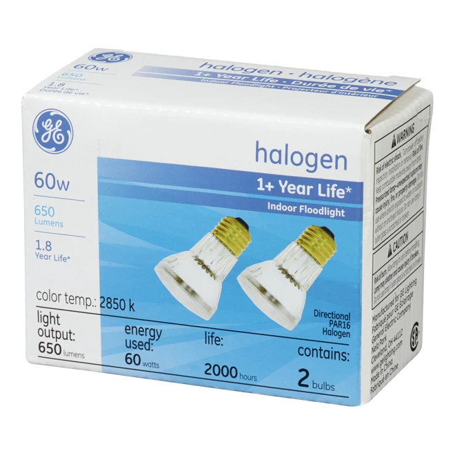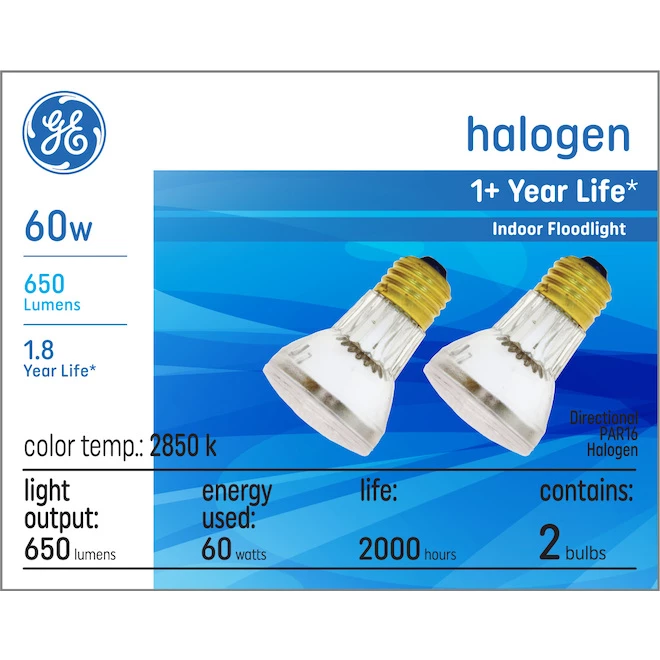 Model Description :GE Soft White 60W Halogen Dimmable Indoor Floodlight PAR16 Light Bulb (2-Pack)