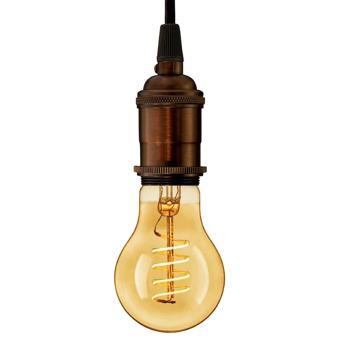Vintage Style Spiral Filament Amber Finish A19 LED light bulbs combine the retro look of antique incandescent bulbs with the benefits of LED. A warm candlelight glow and golden-tinted amber glass recreate the vintage light bulb. This decorative bulb’s distinuishing feature is a unique spiral filament design that adds a decorative touch and rustic feel in fixtures where the bulb is visible. Vintage Style LED bulbs are rated to last 13 years based on 3 hours per day use. They feature low energy use, instant full brightness and are free of Mercury for easy disposal. Use the Vintage Style Spiral Filament A19 bulb with a medium base in dimmmable pendant lights, chandeliers and decorative fixtures, including damp locations.
