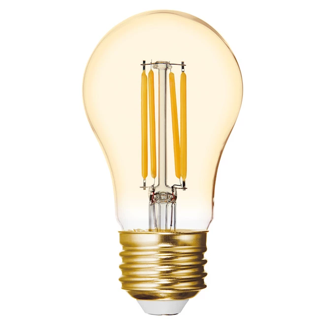Vintage Style 60-Watt Replacement Amber Finish Ceiling Fan A15 LED light bulbs combine the retro look of antique incandescent bulbs with the benefits of LED. A warm candlelight glow and golden-tinted amber glass recreate the vintage light bulb. These decorative bulbs are great for frequently used fixturesuVintage Style LED bulbs are rated to last 13 years based on 3 hours per day use and save 89 dollars on energy costs over the bulb’s life versus a 60-Watt vintage incandescent bulb. They feature instant full brightness and are free of Mercury for easy disposal. Use the Vintage Style general purpose A15 bulb with a medium base in dimmable ceiling fans, pendant lights, chandeliers and decorative fixtures, including damp locations.