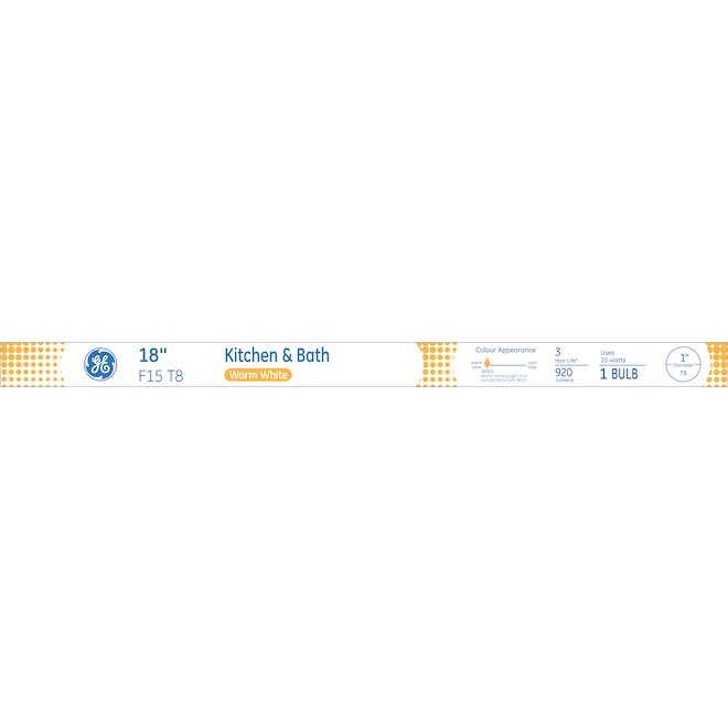 GE’s 15-Watt T8 Kitchen and Bath fluorescent bulbs provide warm white light. They deliver warm tones to create a comfortable and inviting atmosphere.