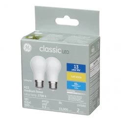 GE Soft White 60W Replacement LED White Ceiling Fan Medium Base A15 Light Bulbs (2-Pack)